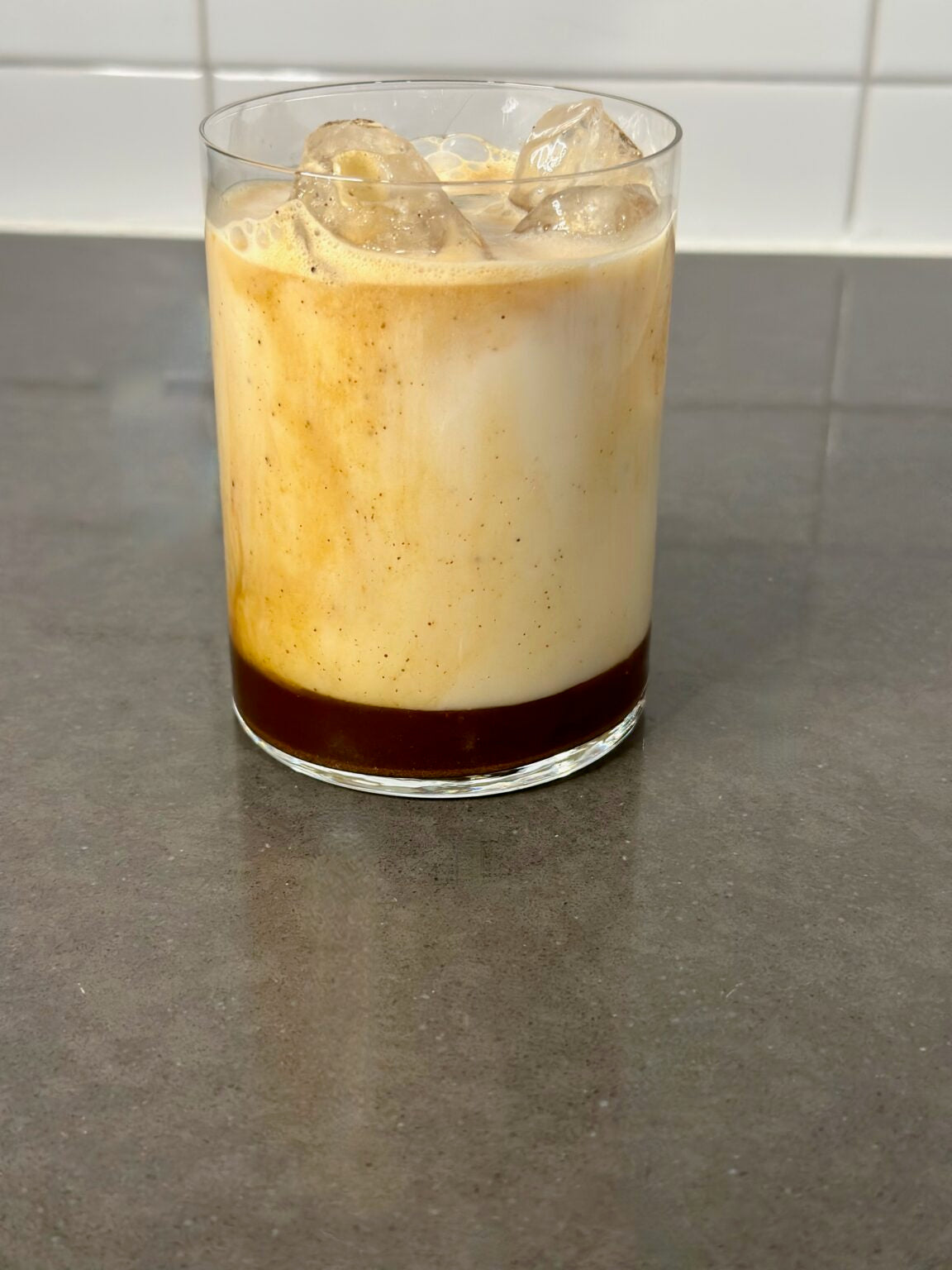 - Fill a cup with the remaining 1 cup of ice. Pour the espresso mixture over the ice. Top with Milkadamia or your milk of choice. Stir to combine.