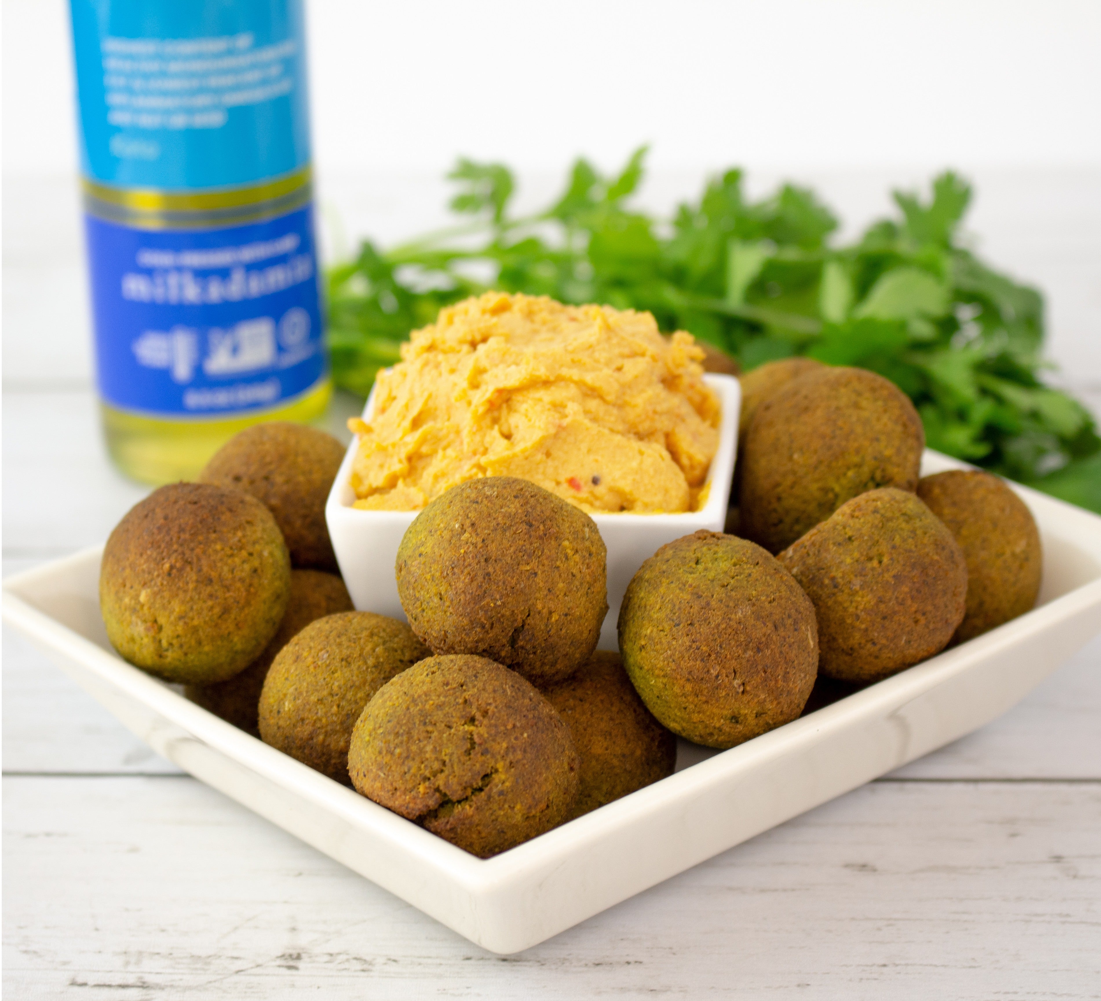 - Add the chickpeas, parsley, cilantro, garlic, salt, pepper, cumin, cinnamon, and the tablespoon of milkadamia’s pure macadamia oil. Process until smooth.