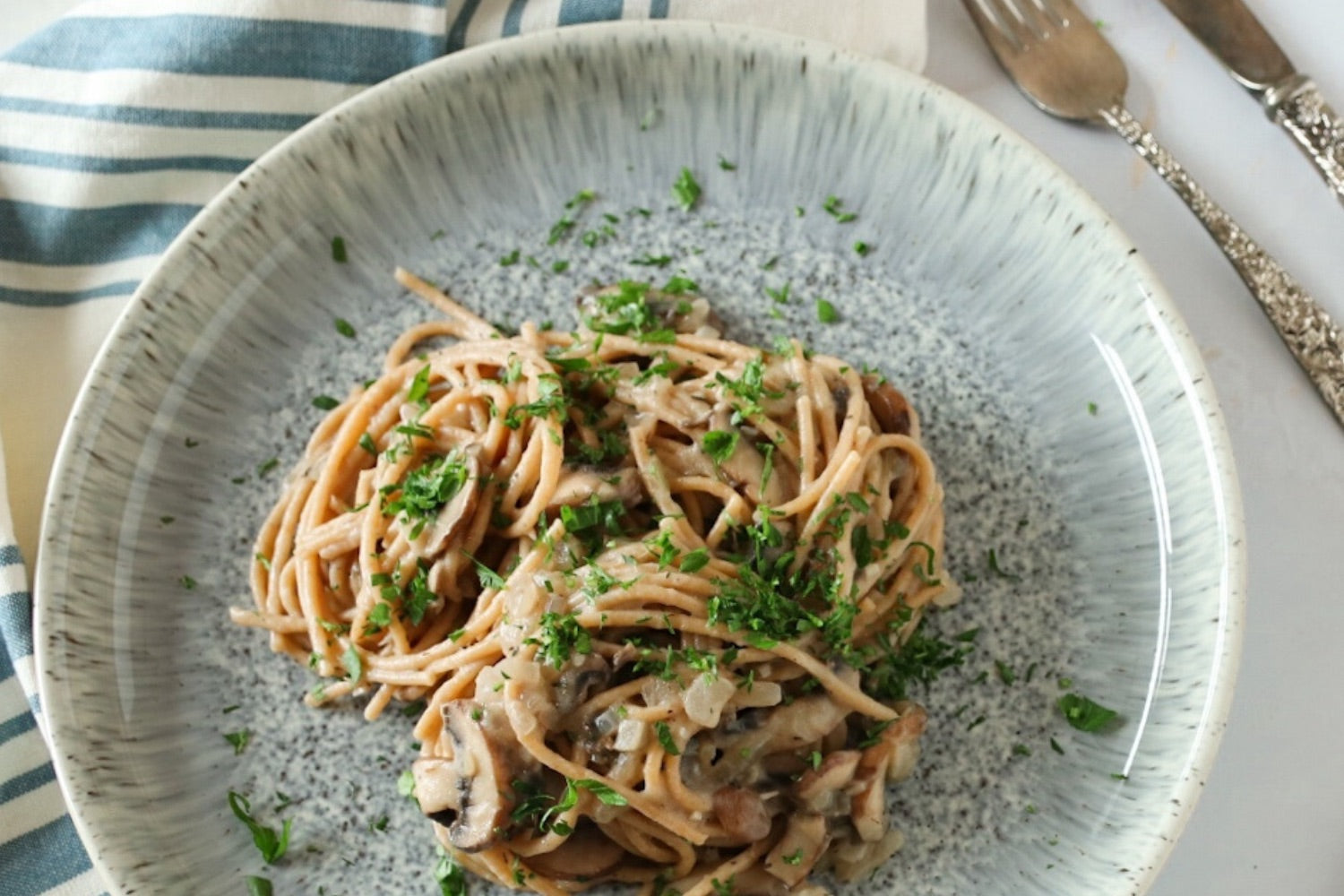 - Add in the cooked pasta and mix to combine. Garnish if desired.