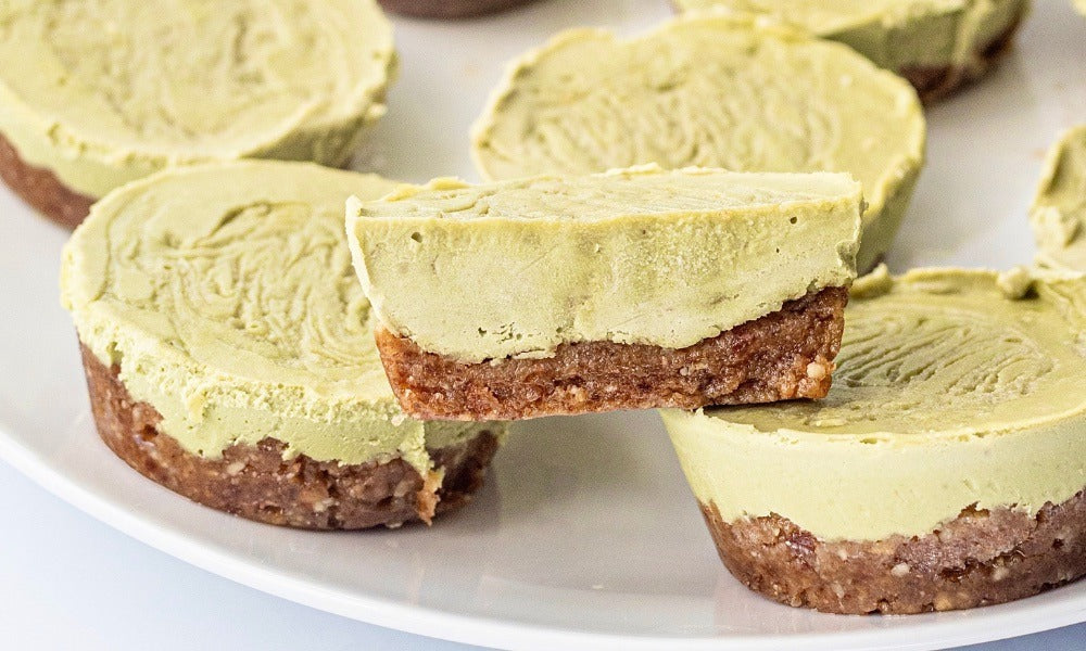 To make the crust, blend dates in the food processor until they form a ball. Set aside, then blend the pecans until they’re ground up completely. Add the dates back in and blend until it combines to make a crust.