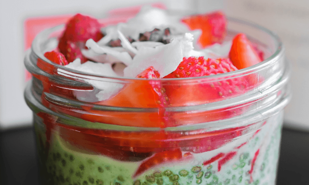 Gently swirl bowl or jar until chia seeds and Matcha combine.